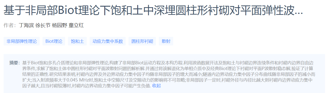 基于非局部Biot理论下饱和土中深埋圆柱形衬砌对平面弹性波的散射